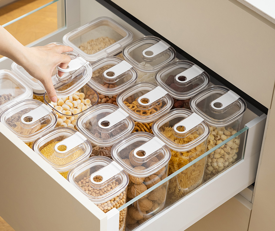 • Glass-like clarity for easy visibility of contents. • Manicure-friendly design • Refined silhouette, effortless to hold. • Airtight and waterproof with a silicone freshess seal. • Available in 4 sizes to meet all your pantry storage needs.