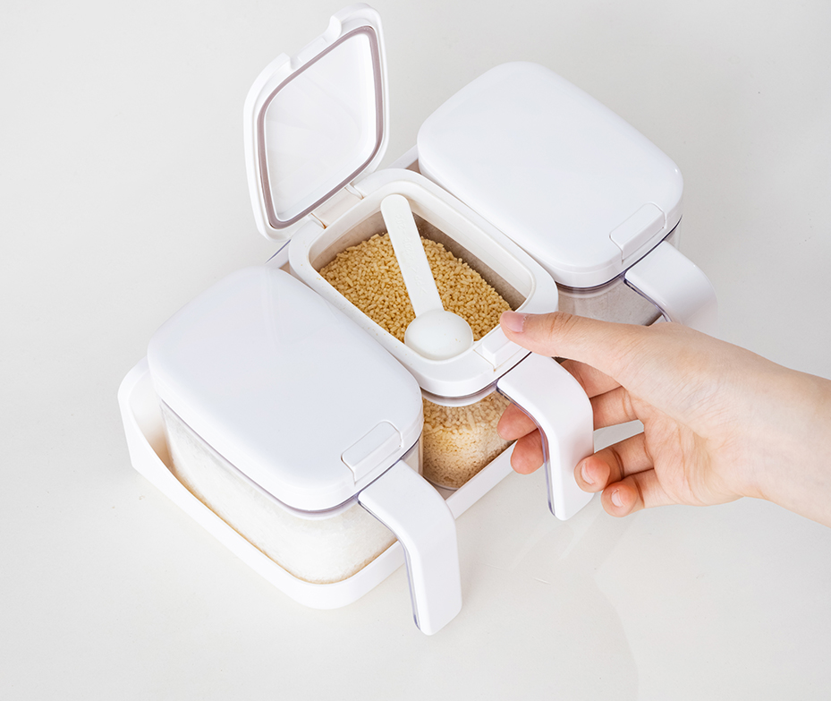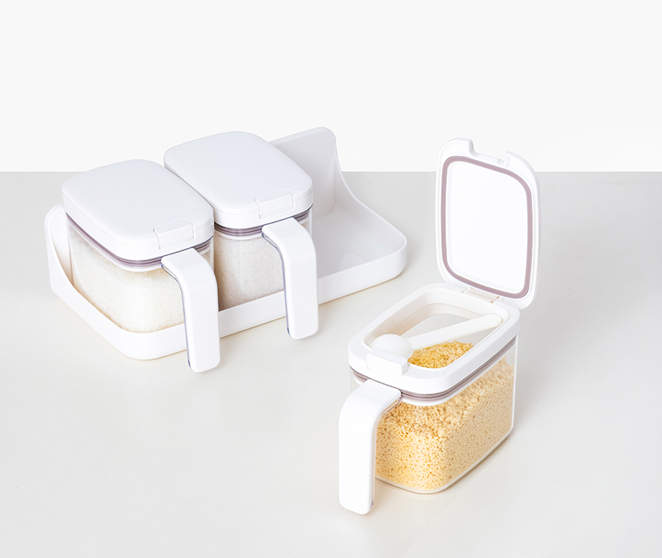 •Grid design,Easy to take seasonings. •420ml each grid for one bag of salt. •One click opening. •Food grade silicone gasket. Damp proof and anti-blocking. •2ml spoon with scratch design for healthy use. •Easy cleaning with detachable lid •Transparent with good looking.