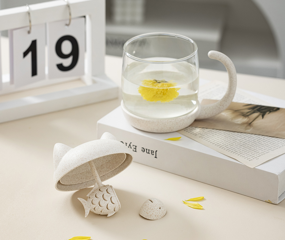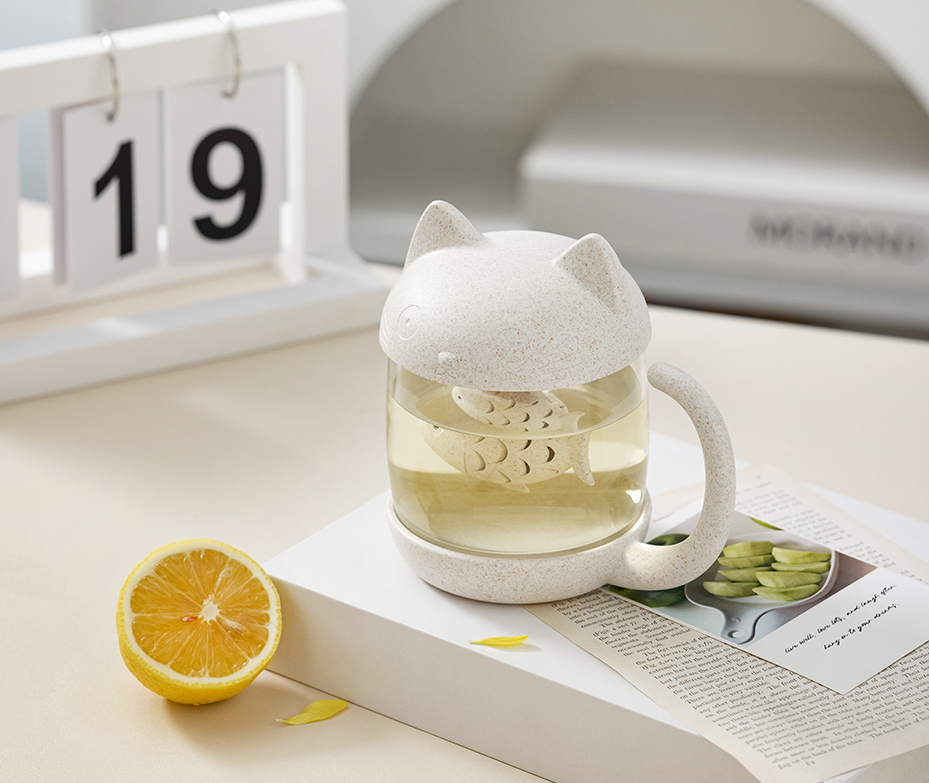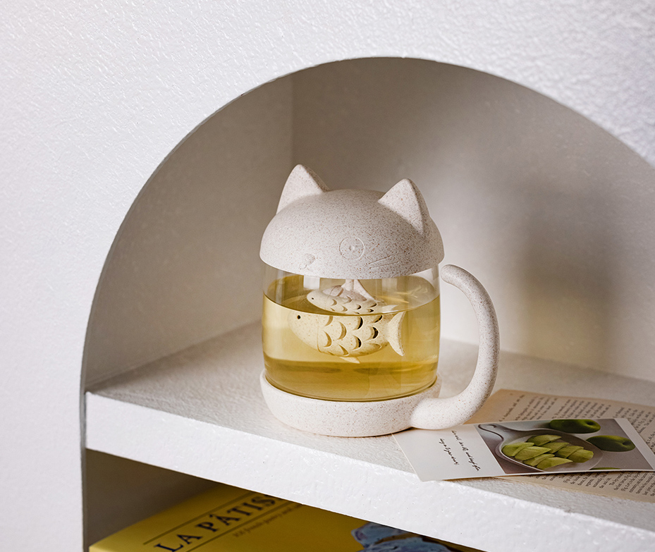 •Cute cat model,lively and fun •Delicate fish-shaped tea infuser, perfect for holding tea leaves or tea bags •Removable infuser for easier ceaning •Made of soda-lime glass