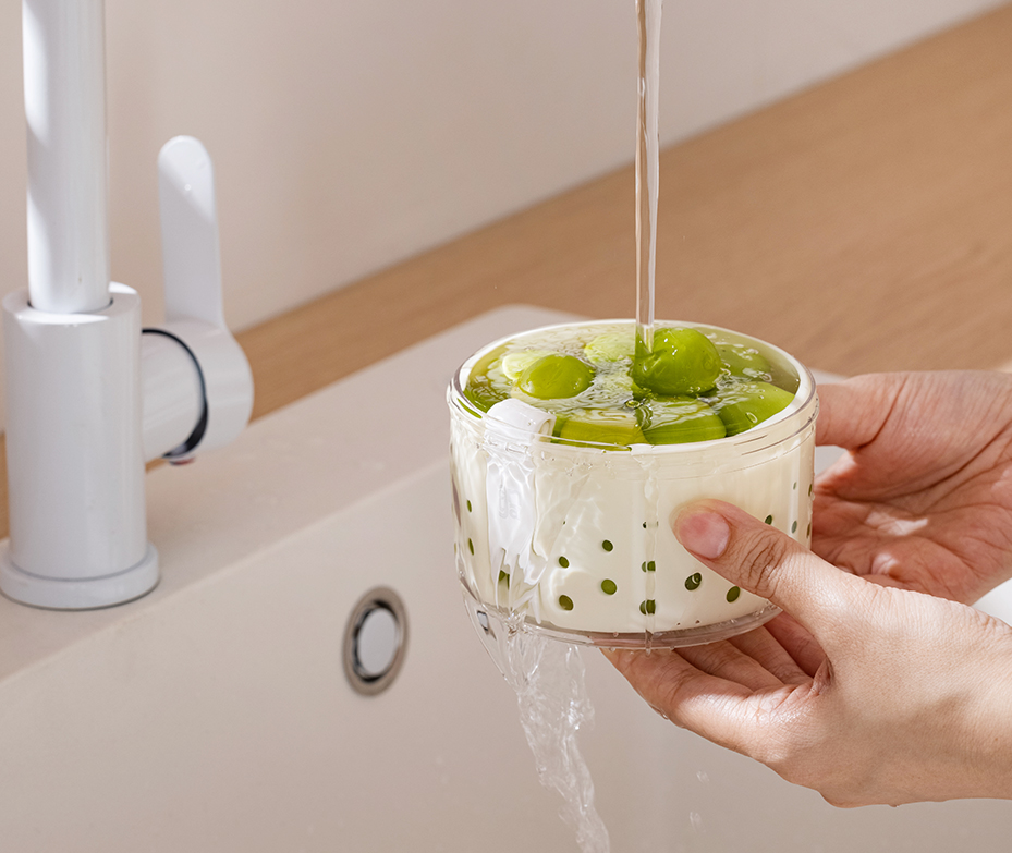 •More convenient for takeout with stacked structure and seperate storage. •Delicate capacity of 400ml for travel light. •Leakproof silicone gasket for safe outdoor use. •Easy washing and free of soaking with built-in drainer. •Convenient to carry with silicone belt •Food grade AS material. Eco-friendly and oderless. Good looking with high transparent body