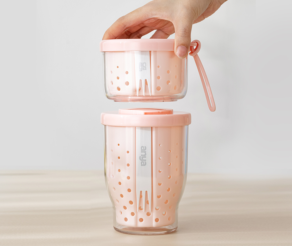 •More convenient for takeout with stacked structure and seperate storage. •Leakproof silicone gasket for safe outdoor use. •Easy washing and free of soaking with built-in drainer. •Convenient to carry with silicone belt •Food grade AS material. Eco-friendly and oderless. Good looking with high transparent body