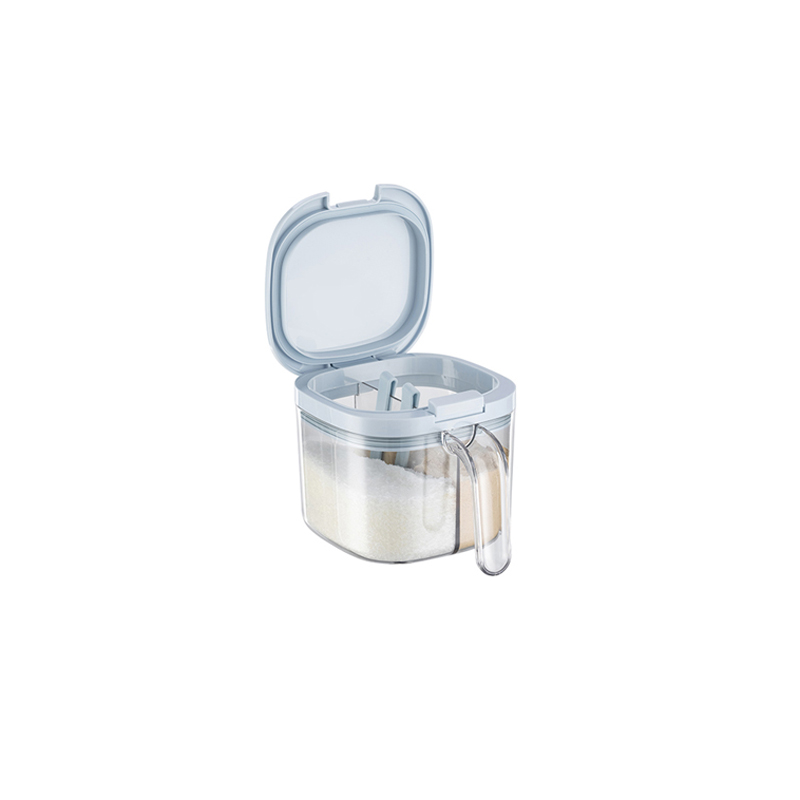 •One jug with two grids. Easy to take seasonings. •470ml each grid for one bag of salt. •One click opening. •Food grade silicone gasket. Damp proof and anti-blocking. •2ml spoon with scratch design for healthy use. •Easy cleaning with detachable lid •Eco-friendly and food grade PET material. Transparent with good looking.