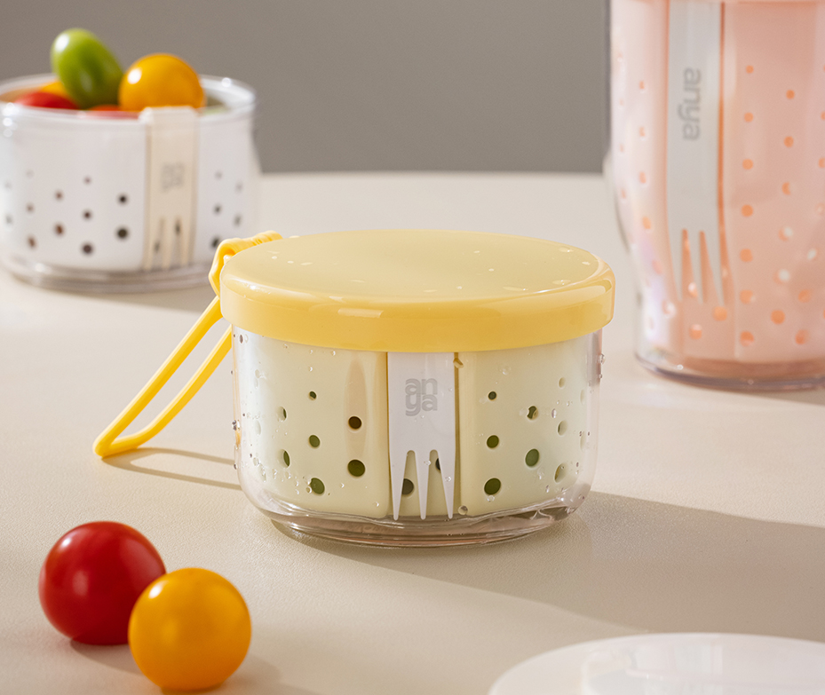 •Delicate capacity of 400ml for travel light. •Leakproof silicone gasket for safe outdoor use. •Easy washing and free of soaking with built-in drainer. •Convenient to carry with silicone belt •Food grade AS material. Eco-friendly and oderless. Good looking with high transparent body