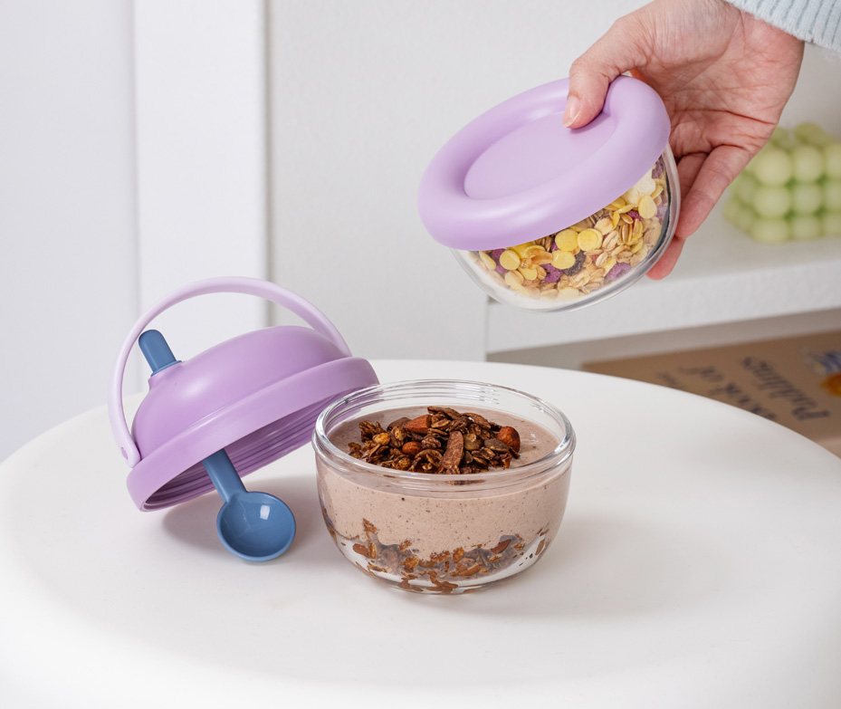 • Yogurt and granola can be separately packaged for a fresher, crunchier taste. • Wet section for yogurt and dry sectionfor granola • Perfect for outdoor picnics as it's easy to carry on • Inside with a spoon, ensuring cleanliness and hygiene. • Leak-proof and can be safely placed in your backpack. • Available four colors for option